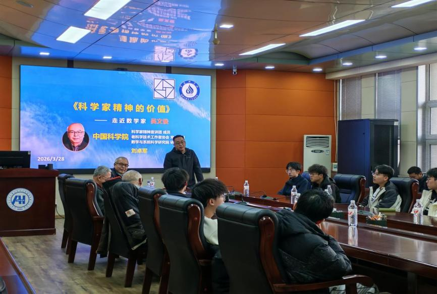 报告中,刘卓军老师以吴文俊先生的学术人生为主线,系统阐释了科学家精神的深刻内涵。吴文俊先生是我国著名数学家、首届国家自然科学奖一等奖获得者,在拓扑学、数学机械化等领域做出了具有世界影响的原创贡献。刘卓军从“吴文俊何许人也”“不吃老本再立新功”“自立自强持续创新”三个层面展开,通过丰富的图片与史实,生动展示了吴文俊从早期拓扑学研究到开创数学机械化方向的学术历程,彰显其淡泊名利、潜心治学、敢为人先的科学品格。